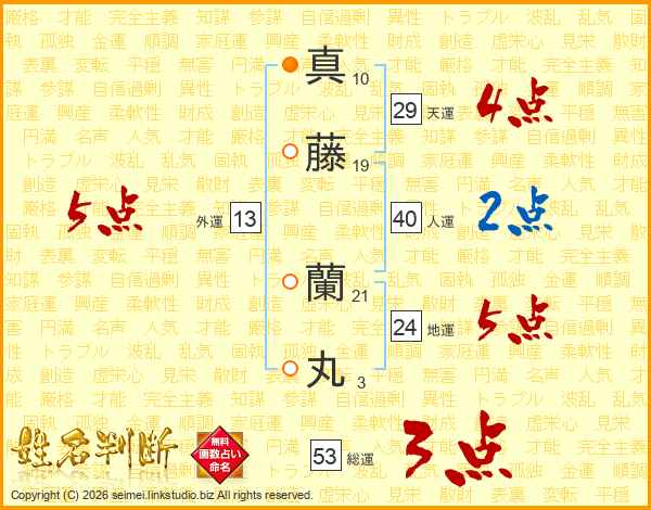 真(10画)藤(19画) 蘭(21画)丸(3画)
