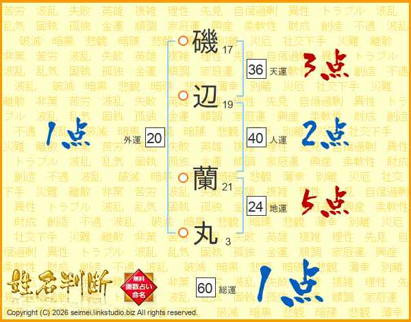 磯辺蘭丸さんの総運は60画の1点!