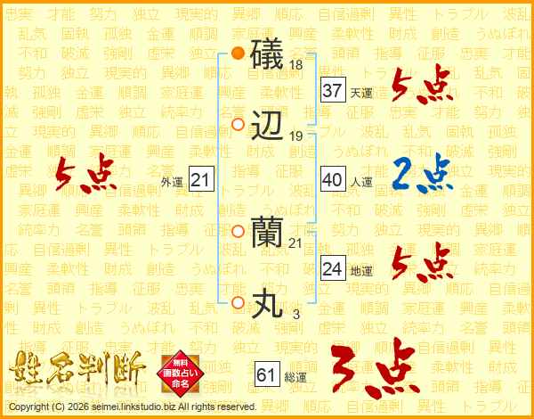 礒辺蘭丸さんの外運は21画の5点!