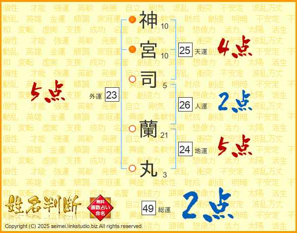 神宮司蘭丸さんの総運は49画の2点!