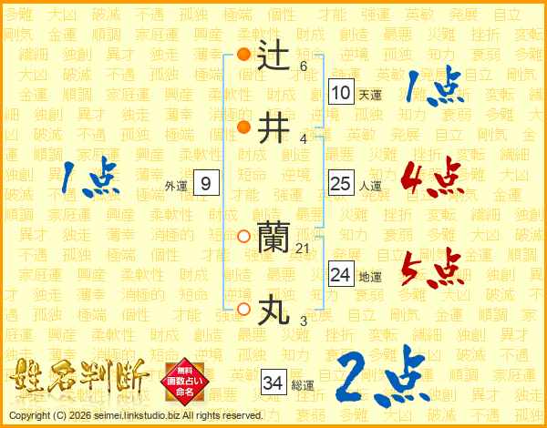 辻(6画)井(4画) 蘭(21画)丸(3画)