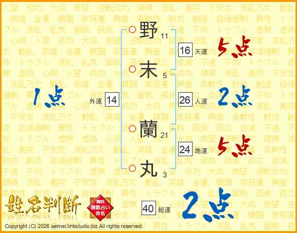 野末蘭丸さんの総運は40画の2点!
