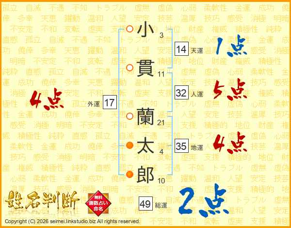 小貫蘭太郎さんの総運は49画の2点!
