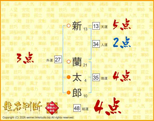 新(13画) 蘭(21画)太(4画)郎(10画)