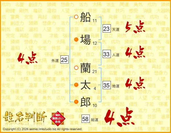 船場蘭太郎さんの総運は58画の4点!