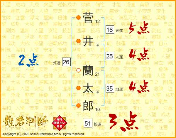 菅(12画)井(4画) 蘭(21画)太(4画)郎(10画)