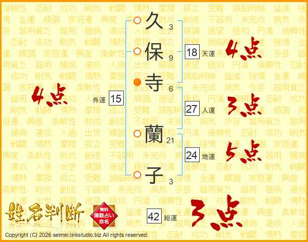 久(3画)保(9画)寺(6画) 蘭(21画)子(3画)