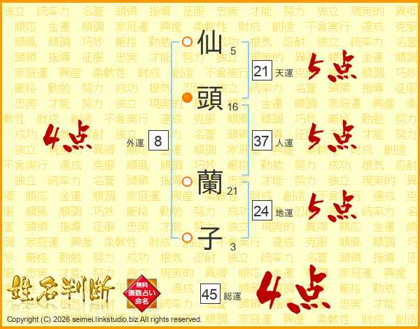 仙頭蘭子さんの総運は45画の4点!