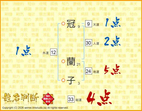 冠蘭子さんの総運は33画の4点!