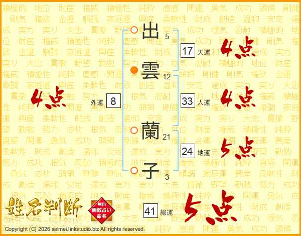 出雲蘭子さんの総運は41画の5点!