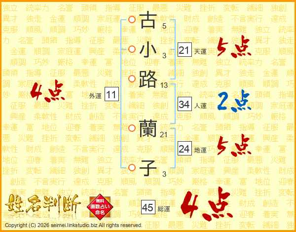 古小路蘭子さんの総運は45画の4点!