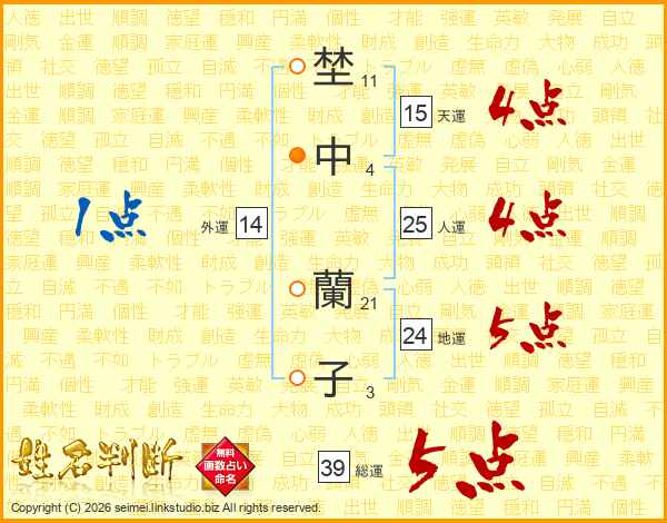 埜中蘭子さんの総運は39画の5点!
