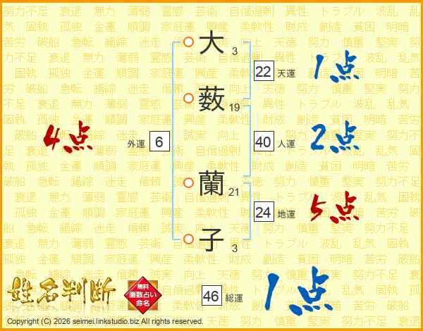 大薮蘭子さんの総運は46画の1点!