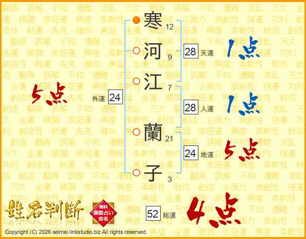 寒河江蘭子さんの総運は52画の4点!