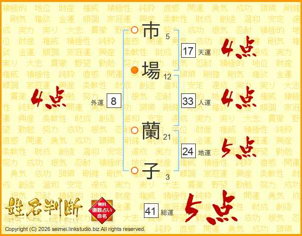 市場蘭子さんの総運は41画の5点!