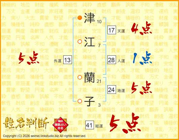 津江蘭子さんの総運は41画の5点!