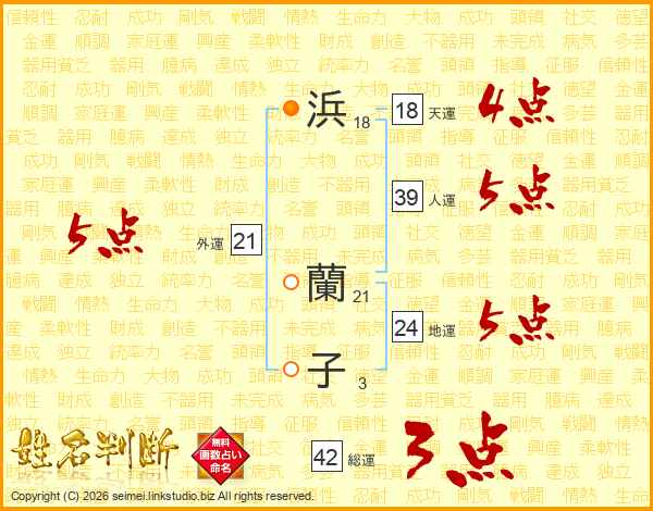浜(18画) 蘭(21画)子(3画)