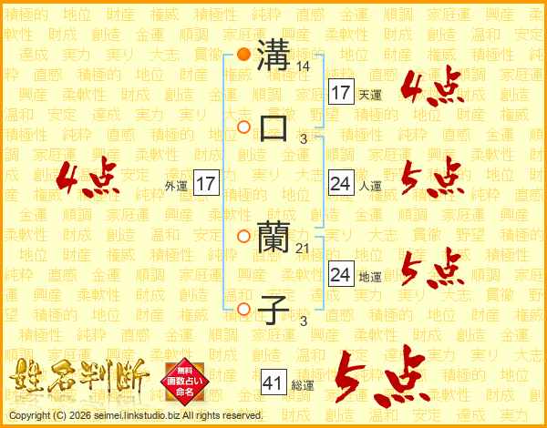 溝(14画)口(3画) 蘭(21画)子(3画)