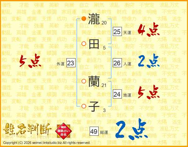 瀧田蘭子さんの総運は49画の2点!