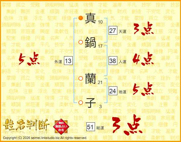 真鍋蘭子さんの総運は51画の3点!