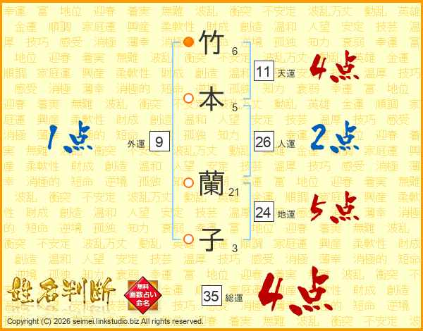 竹(6画)本(5画) 蘭(21画)子(3画)