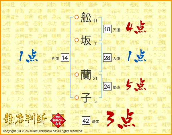 舩坂蘭子さんの総運は42画の3点!