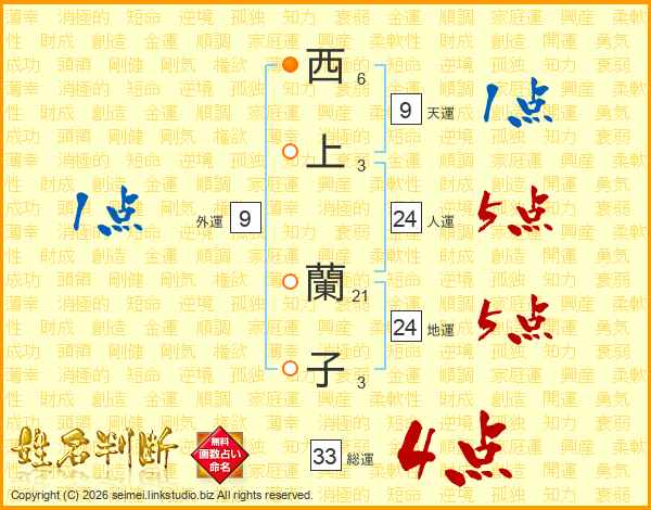 西上蘭子さんの総運は33画の4点!