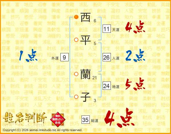 西平蘭子さんの総運は35画の4点!