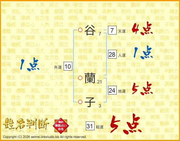 谷蘭子さんの総運は31画の5点!