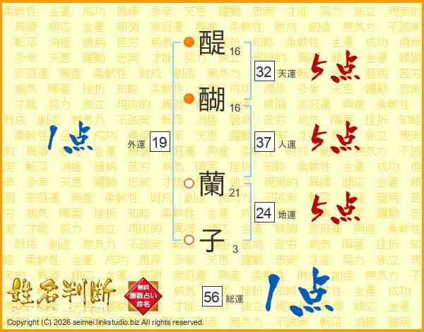 醍醐蘭子さんの総運は56画の1点!