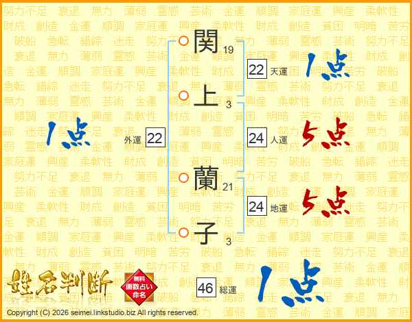 関上蘭子さんの総運は46画の1点!