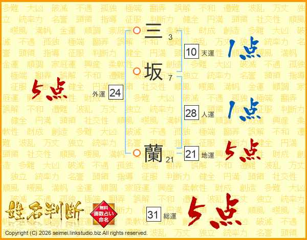 三坂蘭さんの総運は31画の5点!