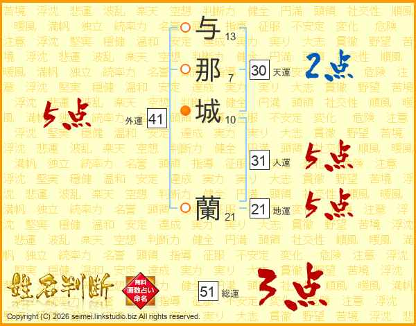 与那城蘭さんの天運は30画の2点!