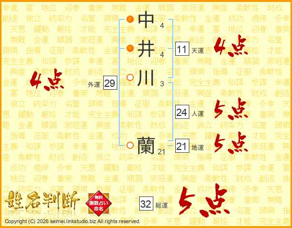 中井川蘭さんの総運は32画の5点!