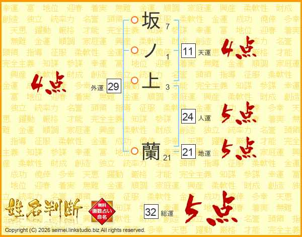 坂ノ上蘭さんの総運は32画の5点!