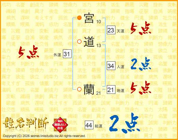 宮道蘭さんの外運は31画の5点!