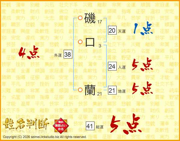 磯口蘭さんの総運は41画の5点!