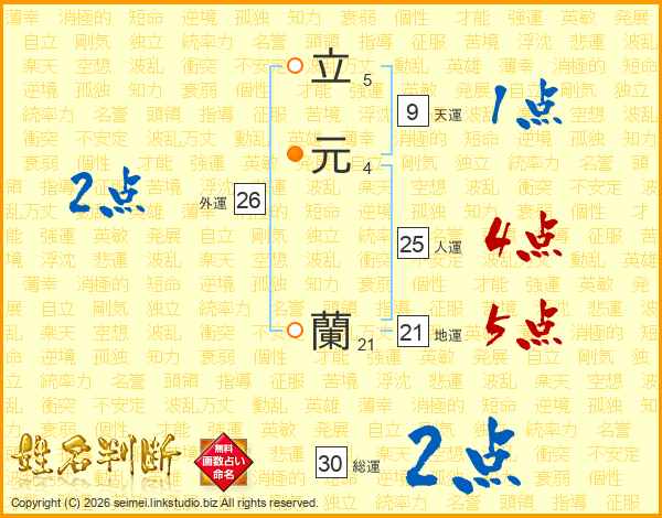 立元蘭さんの総運は30画の2点!