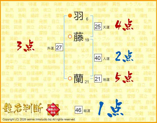 羽藤蘭さんの総運は46画の1点!