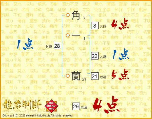 角一蘭さんの総運は29画の4点!