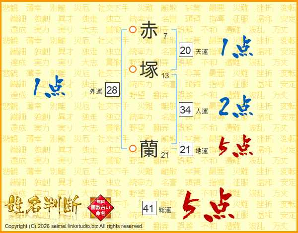 赤塚蘭さんの総運は41画の5点!