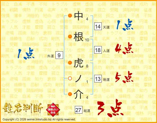 中根虎ノ介さんの総運は27画の3点!