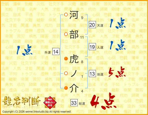 河部虎ノ介さんの総運は33画の4点!