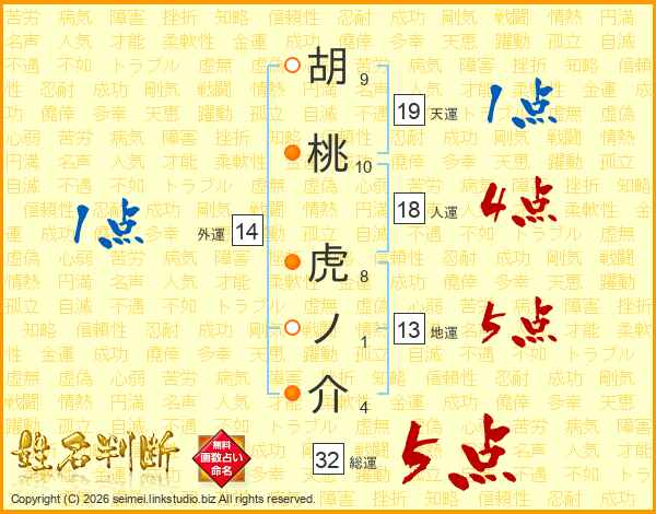 胡桃虎ノ介さんの人運は18画の4点!