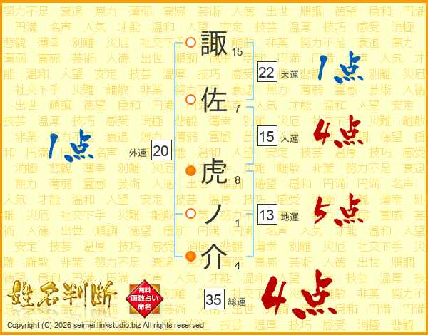 諏佐虎ノ介さんの総運は35画の4点!