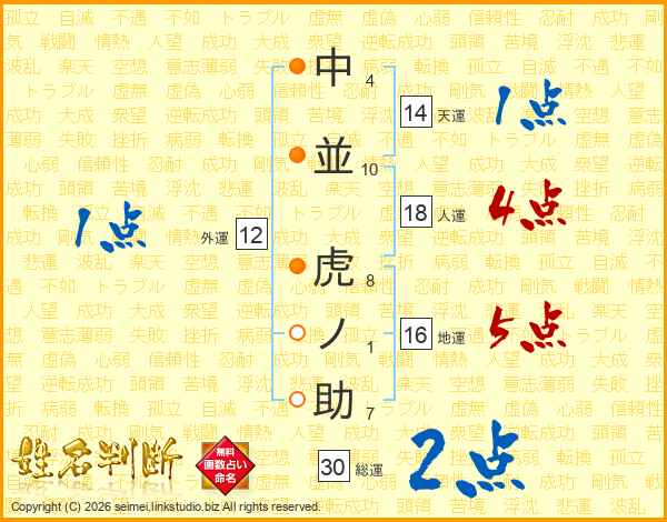 中並虎ノ助さんの総運は30画の2点!