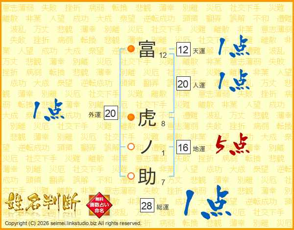 富虎ノ助さんの天運は12画の1点!