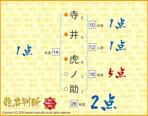 寺井虎ノ助さんの総運は26画の2点!