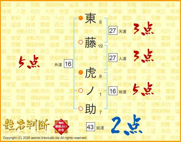 東藤虎ノ助さんの天運は27画の3点!