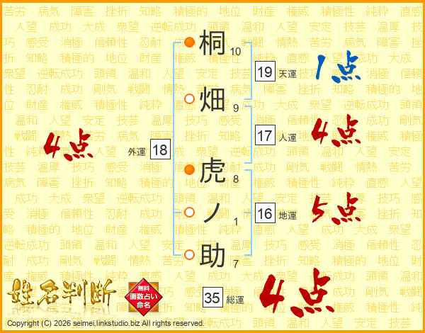 桐畑虎ノ助さんの総運は35画の4点!